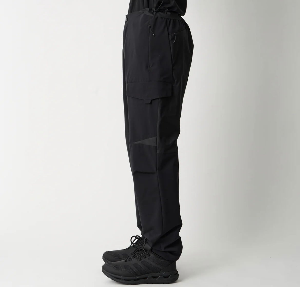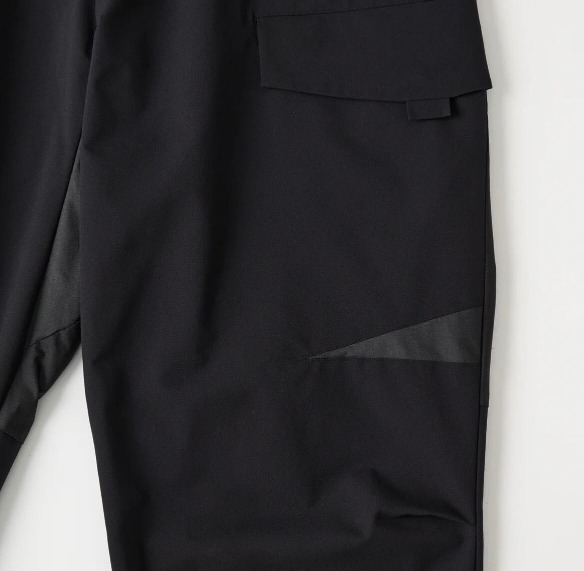黒のみで構成された、“BLACK LAYER KNOWLEDGE”(黒を重ねる知識)というコンセプトのもと、パターンメイキングとハイスペックな素材の融合により、ソリッドでミニマルなアイテムを製作。