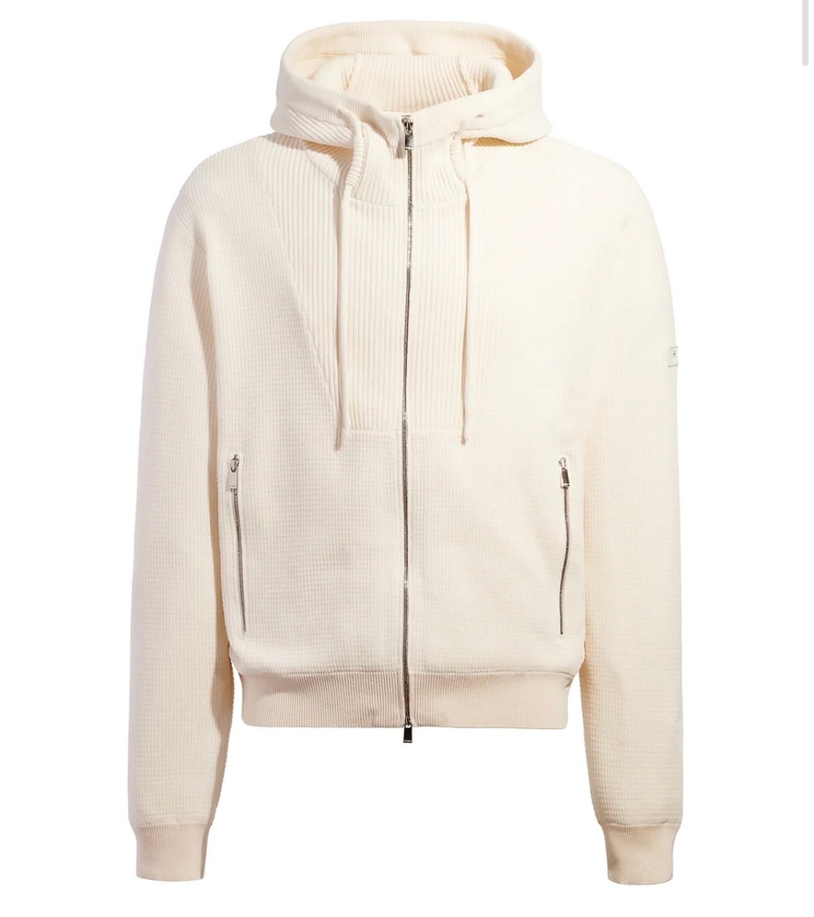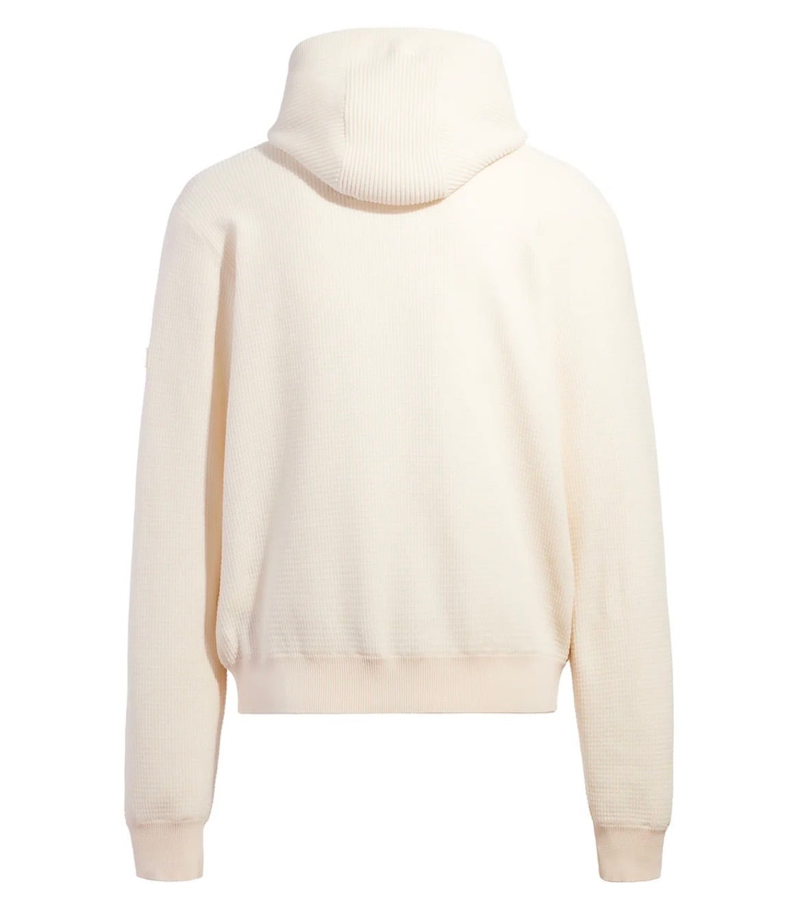 上部やフードをリブ編み生地で切り替えて、立体感のある表情に。
